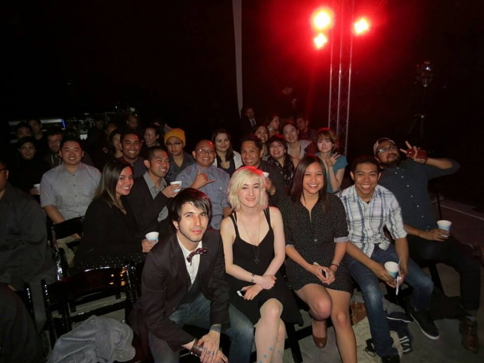 But, just imagine: You are at this orchestra event with industry professionals and label mates in their professional “cocktail” suit-and-tie attire, while you have all these “kids”/boardies, who are all not collectively in that attire, and you give them the responsibility to man the wine bar (kids who appear obviously drunk). So, of course we’re gonna egg each other on to drink more and more to get rid of it! (What’s the harm?) I personally couldn’t feel much. I was debating on a third glass, and Joya laughed to me and said, “I’m going for a third one!” so I obliged while my brother said, “You’re good.” I ended up talking to Jimmy a bit, who is currently working on a new record; I talked to Jenay, who is a mutual friend of a friend from the Bay; I snapped a photo with Meg, as she was heading out to go home. For some reason, my too-social self never got the chance to take a solo photo with Dia and Joe by their photog area, so Albert called me over to take the “boardie photo.” I had wanted to take a photo with her after, and Albert listened and pushed me toward her, and I asked, “Do you remember me?!” And she was like, “Yeah from the OC right?” Then we had to take our boardie photo, in which I said, “Do we make a silly face? I don’t want to be the only one!” And I heard Dia reply, “I’m making a silly face.”